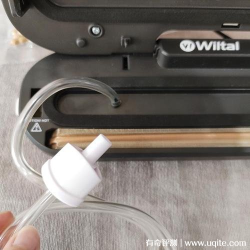 Wiltal真空封口機(jī)分為常規(guī)、柔和以及單封口三種模式,另外它還配了一個(gè)可外接的抽氣管,像大包裝的真空袋,就可以用它來完成抽氣工作,就還挺實(shí)用的。Wiltal真空封口機(jī)的抽氣速度挺快的,一袋食物基本上幾秒鐘就能完成。