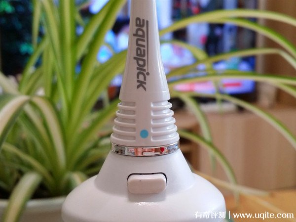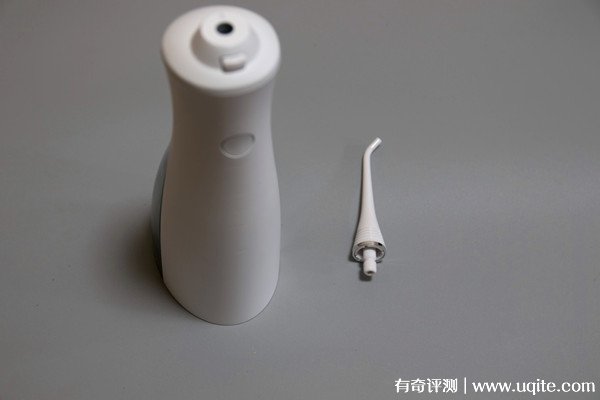 牙酷牙碧沖牙器的噴頭不是插入式的,而是由這個(gè)噴頭釋放按鍵來(lái)控制的。先按住按鍵,把噴頭插入,沒(méi)有方向的限制,松開(kāi)按鍵,噴頭就被卡住了,噴頭可以360度水平旋轉(zhuǎn)。噴頭底部插入部位有環(huán)形槽,內(nèi)部結(jié)構(gòu)應(yīng)該是非常精巧的,否則這么大壓力的水,會(huì)從噴頭連接處溢出的。