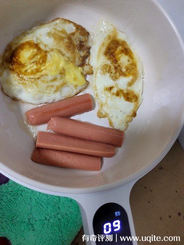 奧克斯電煮鍋的受熱很均勻,像我煎雞蛋、火腿腸什么的基本上不會(huì)出現(xiàn)焦糊問題,而且出來的色澤還挺好看。炒菜時(shí),這款?yuàn)W克斯電煮鍋還不怎么費(fèi)油,所以用起來就還挺不錯(cuò)的。