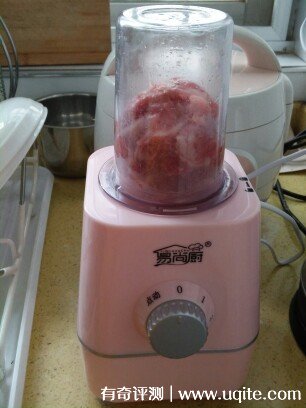 按下開關(guān),大概只需10秒左右就能看到成果,易尚廚榨汁機(jī)工作時(shí)產(chǎn)生的聲音我覺得不算大,完全能夠接受,杯身搖晃也不嚴(yán)重,還算是比較穩(wěn)當(dāng)?shù)?。而且還可以絞肉,效果還不錯(cuò),見下圖。