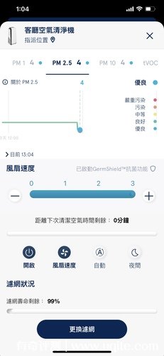 布魯雅爾空氣凈化器在使用時(shí),它的聲音不大,就算是把風(fēng)力開(kāi)到最大檔也基本上聽(tīng)不大很明顯的雜音。而且凈化器會(huì)通過(guò)藍(lán)(優(yōu))、綠(良)黃(中)、橙(污染)、紅(嚴(yán)重)五種顏色來(lái)直觀的告訴你家里的空氣質(zhì)量。另外,在手機(jī)上也能了解到tVOC、PM1、PM2.5和PM10的具體數(shù)值,這點(diǎn)就還挺不錯(cuò)的。