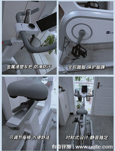 這款Keep動(dòng)感單車顏值挺高的,而且整個(gè)機(jī)身體積不算很大,擺放在家里也不會(huì)覺得很占地方。我仔細(xì)看了一下這款Keep動(dòng)感單車的材質(zhì)做工,車把、腳踏板以及坐板都有進(jìn)行防滑、防汗和安全保護(hù)處理,就還挺不錯(cuò)的。