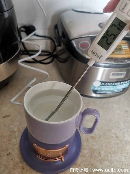 它一共有3檔溫度調(diào)節(jié),具體能維持的溫度還是跟室溫有關(guān)系,我一般用最高檔暖著,早上放上去的開水,下班回家喝是有點熱但不燙嘴的程度。暖冷的東西的話,升溫還挺快,常溫放上去,二十分鐘能升到四十多度,一直放著的話基本維持在四五十度的樣子。