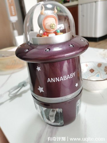 這款A(yù)nnababy輔食機(jī)有紫、綠、藍(lán)三種顏色可以選擇,我入手的是紫色的這款,然后輔食機(jī)的顏值和做工都挺不錯(cuò)的,尤其是它頂部Q版宇航員形象設(shè)計(jì)看著就很可愛(ài)。而且這款A(yù)nnababy輔食機(jī)是雙層6葉刀設(shè)計(jì),在使用時(shí)能夠非常快速的絞碎食物,就挺鋒利的。