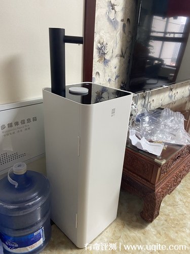 這款魔凡即熱式飲水機(jī)是一個長方體外形設(shè)計(jì),整個機(jī)身中部是空的,然后里面有設(shè)置儲物層,可以用來放杯子、茶葉之類的東西。然后頂部出水龍頭有連接一個軟管(食品級材質(zhì)),使用時(shí),將它放入水桶中就可以了。