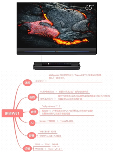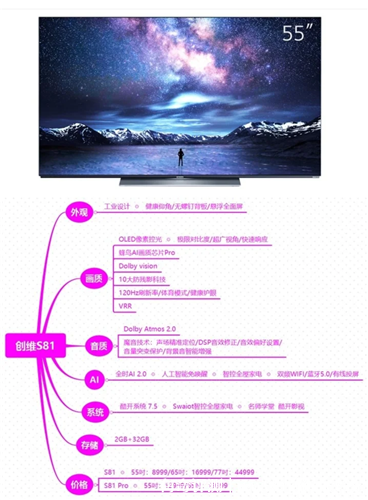 3、S81:創(chuàng)維旗艦版,集萬千寵愛于一身,是創(chuàng)維歡迎度超高的OLED電視。