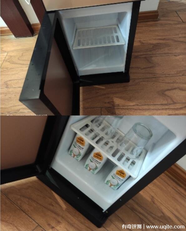 飲水機(jī)已經(jīng)開(kāi)始正常工作了。下面的儲(chǔ)物間很大,我們也沒(méi)有浪費(fèi)空間,放了一些飲品和水杯進(jìn)來(lái)。