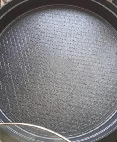 它的材質(zhì)是麥飯石材質(zhì)的,還有防粘鍋的波浪紋底,所以不會(huì)粘鍋,只需要輕輕一擦就干凈了。它的大小個(gè)人感覺(jué)也剛好合適。拿回家當(dāng)天就用它作用一次生煎包,倒上油,放在里面不到幾分鐘的時(shí)間,就做好了,真沒(méi)想到盡然這么快啊。