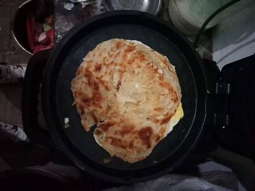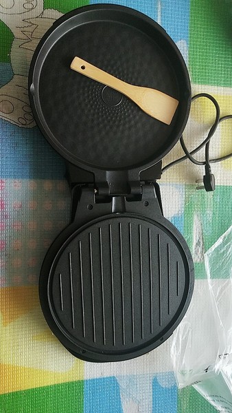 拿回來(lái)的當(dāng)天用它做了一次煎餅,因?yàn)槭遣徽冲佂繉雍豌@石菱紋理,所以可以直接將面團(tuán)壓成形鍋底倒上油苦,然后在選擇合適的溫度,它雙面烤盤(pán)的溫度是獨(dú)立控制的,所以可以根據(jù)需要選擇,1200W的大火力,不到五分鐘,薄餅就做好了。