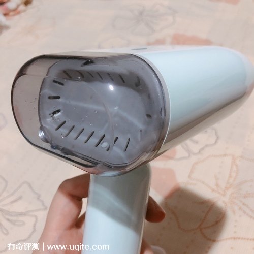 它的注水口在后方,黑色透明的,能清楚的看見(jiàn)水量,這一點(diǎn)挺好的,不用擔(dān)心在不知情的情況下干燒。注滿一次水可以燙四五件衣服,所以每次也就需要注兩次水的樣子,也不算麻煩。