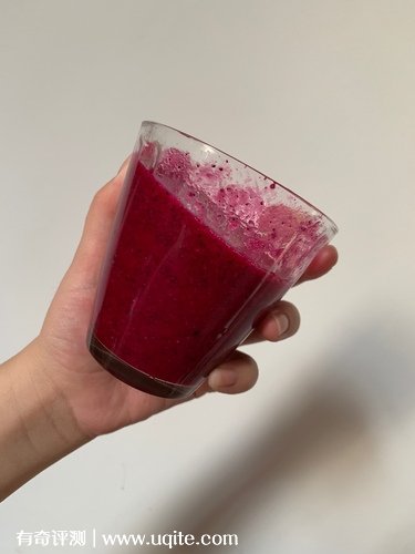 它比較方便的一點就是直接榨了可以拿起杯子喝,一杯的量和平時奶茶杯差不多,挺合適的,不會覺得撐也能盡興。它雖然只有兩葉刀片,但是轉(zhuǎn)速超級快,而且超級鋒利,西瓜子都打碎了,成品和奶茶店沒區(qū)別。