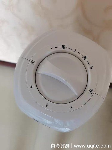 它上面的旋轉(zhuǎn)按鈕朝不同方向作用是不同的,一邊是檔次,一邊是檔次加搖頭。我們很少用搖頭功能,不過搖頭的時候它底盤還挺穩(wěn),沒有晃動。最近溫度35℃左右,開三檔很舒服,前幾天二十多度下雨的時候,二檔挺合適,一檔也不熱,就像窗外的風吹進來的感覺。他是廣角送風的,所以范圍還挺大。