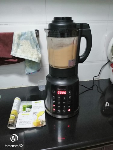 這款破壁機已經用有一段時間了,原價要將近六百元,但是我領取了內部券,所以只花了三百元不到就買到了。到手后從它的做工上就知是正品無疑,全鋼琴烤漆的底座,加厚的玻璃杯體,超寬的智能化的高清你顯示屏,一看就和一般的破壁機有差別。