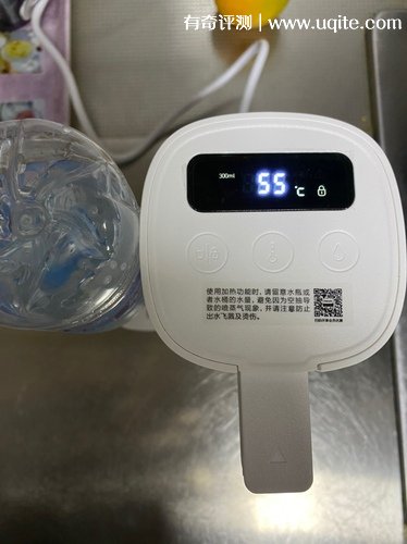 頂部是顯示屏和按鍵,左側(cè)是個童鎖鍵,適合有寶寶的家庭,防止誤碰燙傷。右側(cè)是出水鍵,它是有不同出水量的,個人感覺這個設(shè)計并不好,雖然能防止不留神漫出來,但是想要更多話就還得再按。另外,一般用完后機器里面都會有殘留的水,長按5秒它會排干凈,帶它出門的時候這一點很實用。