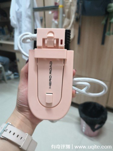 它的體積比較小巧,也就比手機(jī)大一點(diǎn),手柄是可以拆卸的,而且拆下來之后換個(gè)方向裝上去,就能成為蓋殼的一部分,收納起來很方便。
