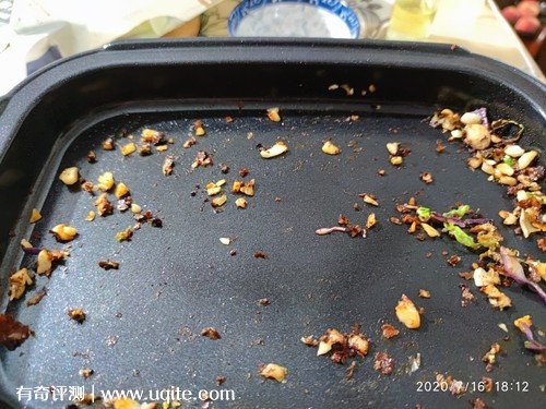它都不怎么需要用油,烤肉的時候用刷子刷一層油就夠用了,能烤好多東西,用中火很合適,前面一波夾出來,放上新的,等吃完碗里的,那些就又好了,不用等待。用完之后底下沒有粘鍋,倒掉渣渣后一擦就干凈了,要不是知道有油,都感覺不用洗了。