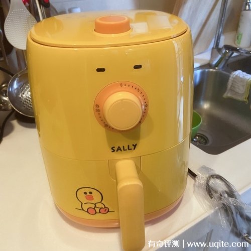 我買的是小黃鴨的這款,顏色很正很亮,小孩剛看到的時候還以為是什么玩具,一個勁的夸好看,喜歡。這款空氣炸鍋是抽屜式的,拿放食物很方便。有兩操作旋轉(zhuǎn)按鈕,分別是時間和加熱溫度,簡單好操作。
