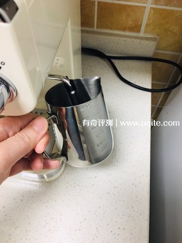想要拉個花,打發(fā)奶泡也非常方便,根據(jù)提示倒好適量的牛奶,打開開關(guān)就可以了,自動打好奶泡,接下來就是最考驗技術(shù)的拉花。