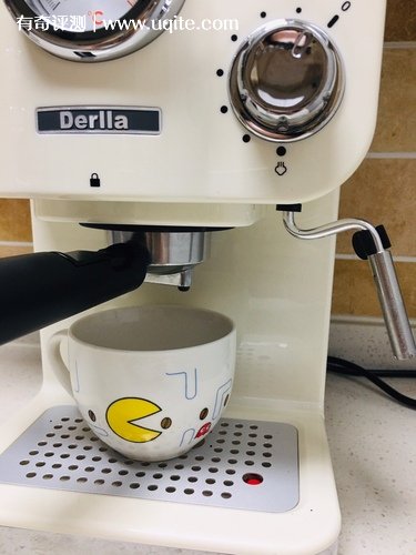 將咖啡粉壓實之后,扣上去就可以萃取咖啡,非常方便快捷。derlla咖啡機(jī)做出來的咖啡油脂也是厚厚的一層,香味很濃。