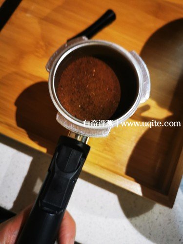 格米萊咖啡機沒有磨豆的功能,就得自己單獨磨豆,然后按壓好,往上一扣,就可以出咖啡了。溫控還是可以的,壓力也比較大,雖然說咖啡油脂不是特別說,但也有一層,聞起來比較香醇。