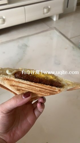 這款iken三明治機(jī)看起來小巧精致,但容量也并不小,正常大小的吐司完全可以放進(jìn)去,而且可以添加很多輔料,豐富三明治的口味。