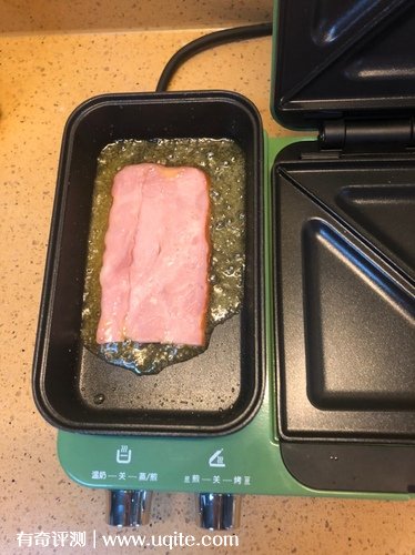 做三明治最不能少的就是肉,但肉也是很容易受熱不均,導(dǎo)致烤糊都是很正常的,不僅不粘鍋已經(jīng)證實(shí)了,而加熱的均勻度,用烤肉來證明是非常不錯(cuò)的。