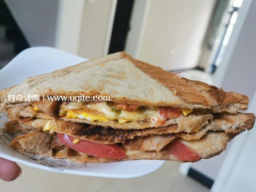 第二天一早我就趕緊用了起來(lái),開(kāi)火直接將面包片放左邊的三明治盤(pán)里,然后右邊用平底鍋再給自己煎一些午餐肉,非常的好操作,而且機(jī)器受熱也很均勻,沒(méi)有出現(xiàn)糊鍋,粘鍋的現(xiàn)象,用完之后直接清洗就可以了,但是要注意不能讓底盤(pán)浸泡在水里。