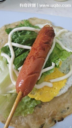 煎餅就更簡單不過了,這個(gè)得自己看著火候來,就算沒有下過廚的人,恐怕都很難糊鍋,畢竟九陽電餅鐺是不粘鍋材質(zhì)的。煎好雞蛋餅,火腿腸旁邊滾一滾就可以做成品,好看又好吃。