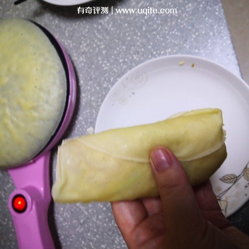 制作薄餅的工具都有配套,所以就直接開始。zitalen薄餅機(jī)上沾滿面糊,就可以開始加熱,不到半分鐘就能出一個(gè)薄餅速度堪比熱得快。