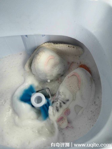 當(dāng)然拿到手最關(guān)心的就是刷鞋效果,這點(diǎn)在實(shí)驗(yàn)過(guò)后,就很放心了,對(duì)于大多數(shù)材質(zhì)的鞋都比較友好,但翻毛皮材質(zhì)的鞋子,就不建議放里面刷了。因?yàn)檗D(zhuǎn)速夠快,皮質(zhì)、布料的刷干凈,但翻毛皮表面刷的不太好看。
