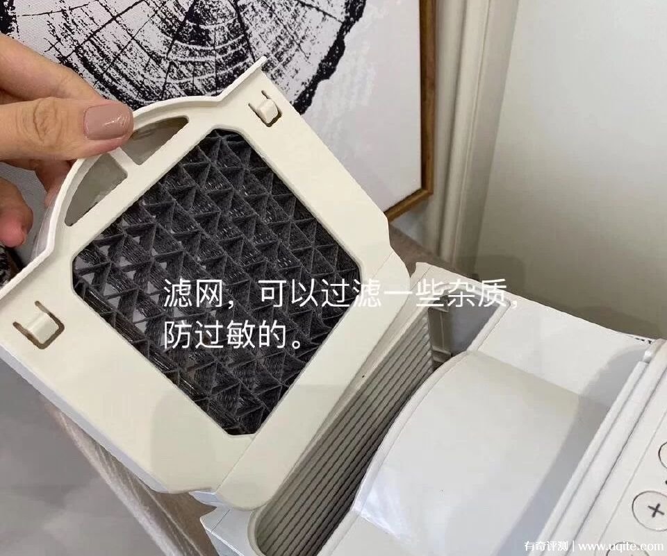 實(shí)物比我想象中的還不占地方,床上、柜子上隨便找個(gè)地方就能放。做工方面蠻精致的,看著上檔次。操作方面一目了然,就那么幾個(gè)按鍵,水箱、濾網(wǎng)這都能拆下來。