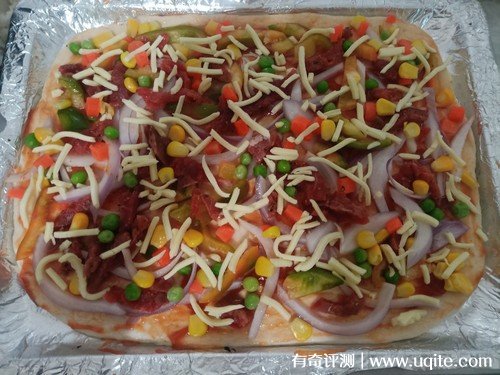 后來還嘗試著做了披薩,做出來的效果也是非常的棒,而且我第一次做,披薩有點(diǎn)厚,但是都給我均勻的烤熟了,味道不比外面買的差。
