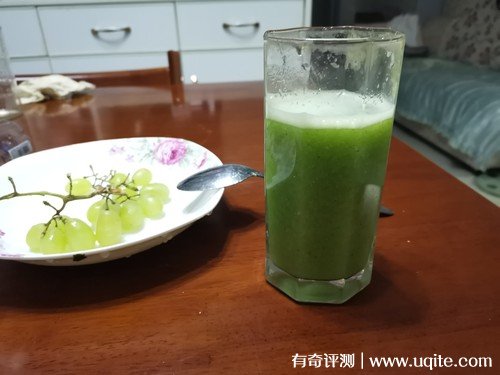 看看我榨的青提汁怎么樣,喝起來還是很甜的,孩子說跟外面沒差呀!