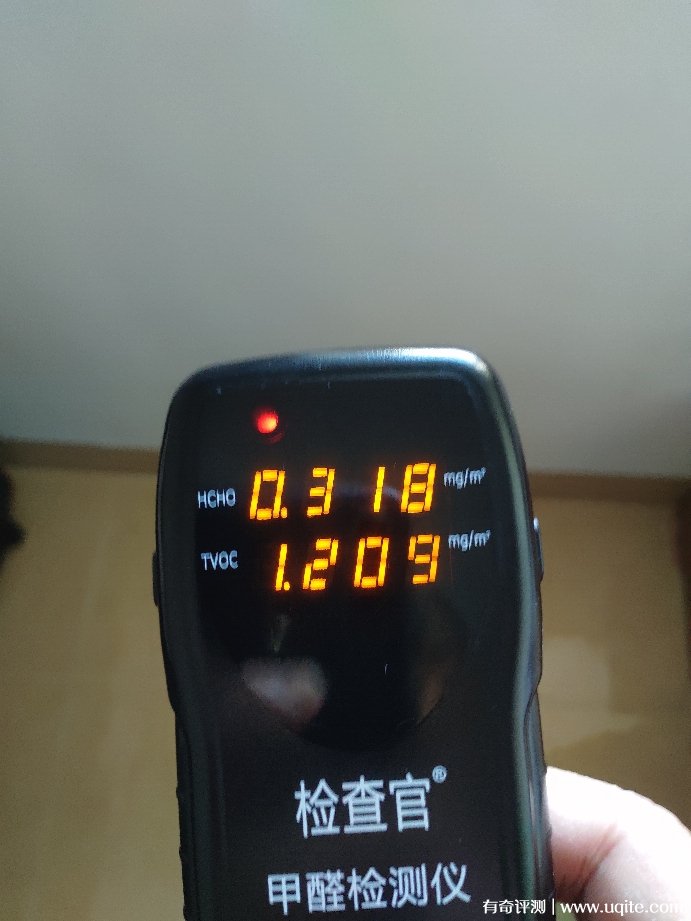 ao史密斯空氣凈化器打開后,會(huì)立即檢測(cè)出空氣質(zhì)量,包括甲醛、PM2.5等,很明顯家里果然有點(diǎn)超標(biāo),空氣質(zhì)量是“差”,數(shù)值是1.00,調(diào)整為“智能”模式后,就開始工作,此時(shí)用空氣監(jiān)測(cè)儀測(cè)的結(jié)果為“HCHO(甲醛分子式)0.328mg/立方米,TVOC(總揮發(fā)有機(jī)物)1.234mg/立方米。