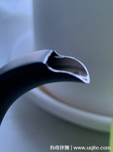 壺嘴流速和水量十分穩(wěn)定,即使手臂完全垂直也是穩(wěn)定的,就像固定好了水流一樣,可能也與壺內(nèi)的阻流網(wǎng)有關(guān),水流不容易斷,很好把控,這也是檢驗(yàn)手沖壺的一大標(biāo)準(zhǔn)。