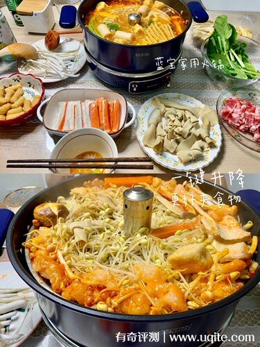 我選了寶藍色,看起來比較高級,畢竟白色也不耐臟。拿到手就能感覺分量有點重,質(zhì)感很好,不愧是大品牌產(chǎn)品,而且可以一機多用,像摩飛小圓鍋能做到的烤肉、蒸鍋等,藍寶升降火鍋都可以做到,最看重的就是它的升降功能。