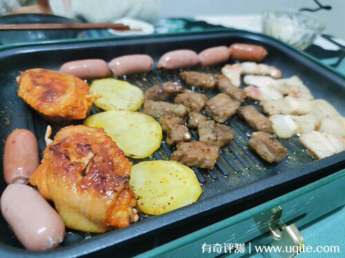Bruno多功能料理操作還挺簡單的,有四檔溫控可以調節(jié)。這款料理鍋使用的時候升溫挺快的,一會就熱起來了,我第一次就用它做了烤肉,很不費油,最開始用大火把鍋加熱,到后面開吃的時候換成中火,就能無縫銜接了,不用怕烤糊,邊烤邊吃挺方便的,一點也不比外面烤肉店差。