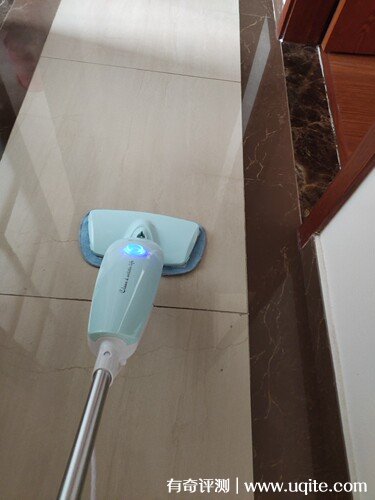作為一款蒸汽拖把,出氣的速度是非??斓模环昼娮笥揖烷_始出氣了,而且蒸汽量很足,但也沒有凝結成水珠,拖完之后水印很少,干得夠快。