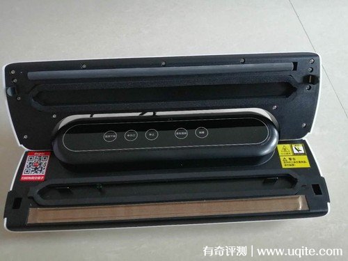真空機的質量很好,機身是可以打開的,使用時將真空塑料袋放在上面壓緊就可以操作了,操作方法很簡單,按照你的食材來進行干濕抽的類型,然后是否封口。抽好后按停止鍵就可以了。