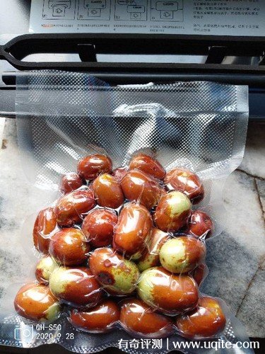 ?,旑D真空封口機用起來也挺簡單的,按鍵設(shè)計一目了然,而且上面都有標注,直接上手使用都沒什么問題。到手的時候我就想試試它的效果,就抽空了一袋棗子,它的速度還挺快的,幾秒鐘就抽好了,而且運作的時候聲音也不大,沖完之后密封口的地方也很緊,只要不弄破袋子它就不會漏氣,效果挺好的。