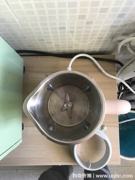 ter迷你豆?jié){機有4葉刀片,摸上去很堅硬的感覺,質(zhì)量挺不錯的,應該也很鋒利,工作中轉(zhuǎn)速很快,所以聲音還是不小的,尤其是打豆?jié){的時候(豆子不用泡),在下面墊塊布會稍微好一點。