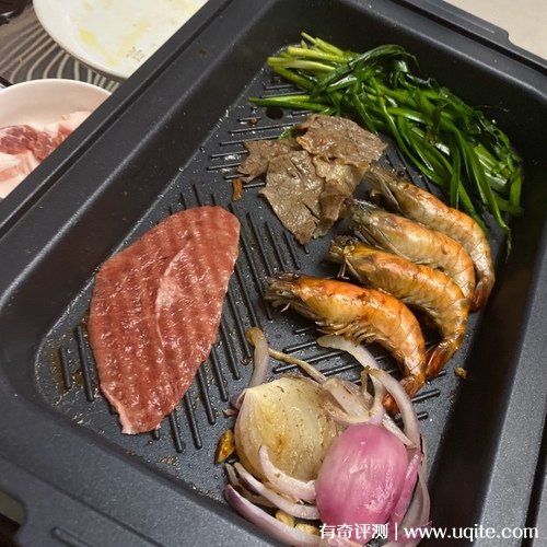 拿到料理鍋之后,我就趕緊操作了起來,晚上直接就來了一頓烤肉,料理鍋的受熱很均勻,食材放在里面不會出現(xiàn)粘鍋糊鍋的現(xiàn)象,而且火了很足,吃起來不用等很久。
