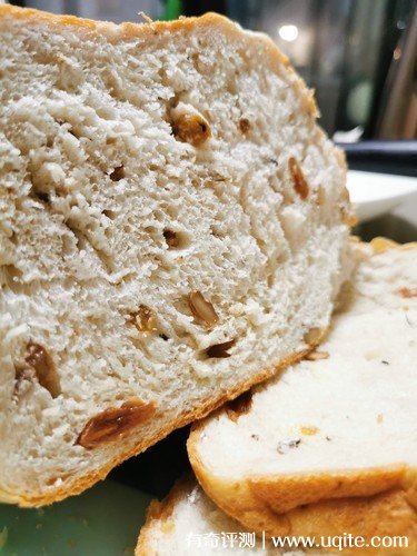 一出爐表皮有點(diǎn)硬,看網(wǎng)上攻略說拿保鮮膜包十分鐘,防止水份散發(fā),果然這樣做之后變軟了。味道特別特別好,因?yàn)樽约鹤?,我減少了糖的分量,口感更好而且更健康了。雖然花費(fèi)的時(shí)間長,但最起碼不用自己操心弄這弄那還不一定弄得好。