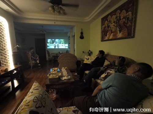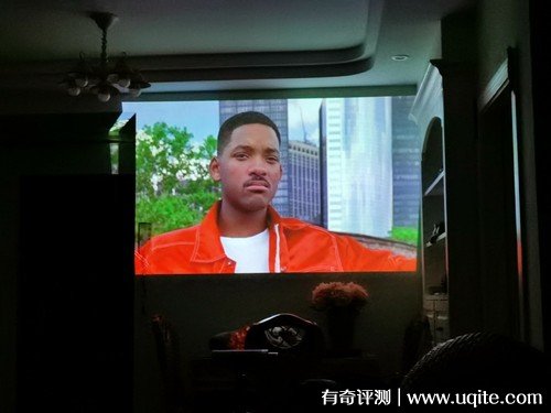 因為我睡的比較晚,所以晚上我還會在入睡前,把投影儀拿到房間里追追劇,或者是連接手機(jī)打游戲,效果真的是沒話說。而且只要是有白色背景的地方都可以用來投影,天花板也可以,一點(diǎn)不影響畫質(zhì)。