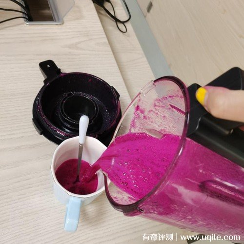 拿到破壁機的當(dāng)天我就趕緊操作了起來,首先是給自己榨了一杯火龍果汁,破壁機的運轉(zhuǎn)速度很快,一杯果汁,幾秒就榨好了,而且出來的果汁效果很濃,喝在嘴里是滿滿的果肉,就很爽。