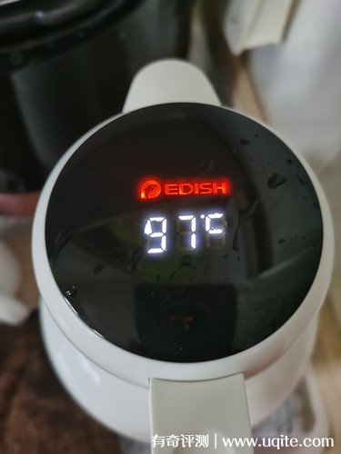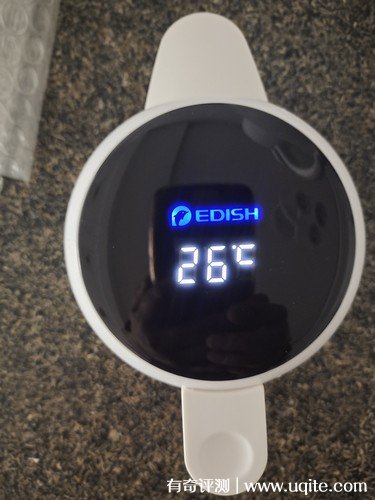 保溫壺拿到手雖然沒(méi)有異味,但是我在使用一樣新的物件時(shí)都會(huì)給它沖洗,浸泡一下,所以我就燒了一壺?zé)崴?,?zhǔn)備把保溫壺泡一泡,順便看一看保溫效果。我是晚上六點(diǎn)多鐘倒的熱水,是97的溫度,到第二天早上九點(diǎn)多鐘,溫度都還有26度,所以保溫效果還是很不錯(cuò)的。并且溫度很高時(shí),保溫壺的產(chǎn)品標(biāo)簽顏色會(huì)變成紅色,低溫則是藍(lán)色,這樣可以起到提醒的作用,細(xì)節(jié)設(shè)計(jì)的很好。