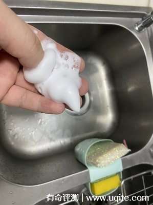 我買的是沒有調(diào)節(jié)檔位的款式,但是就按它的出泡量來說,我感覺每次是夠一個(gè)洗碗的。它感應(yīng)很靈敏,基本上靠近瓶口就能感覺機(jī)子在工作了,有一點(diǎn)聲音,然后泡沫可能就那么一兩秒的樣子就出來了,泡沫很綿密的感覺,清洗起來很方便。