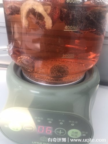 到手的時候我就用它煮了一壺紅棗枸杞茶,本來以為要等好久才回煮好,結(jié)果十分鐘左右就好了,倒了一杯嘗了一下,味道還是很不錯的,喝完之后整個人都暖洋洋的。