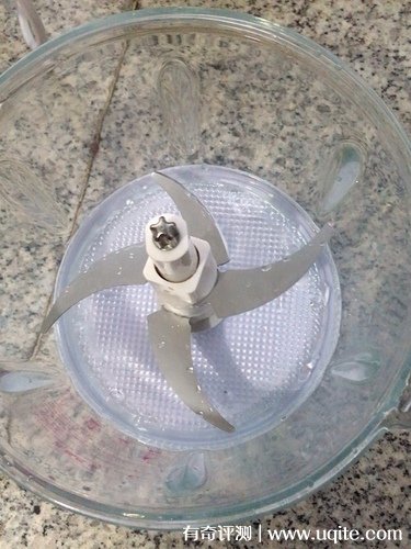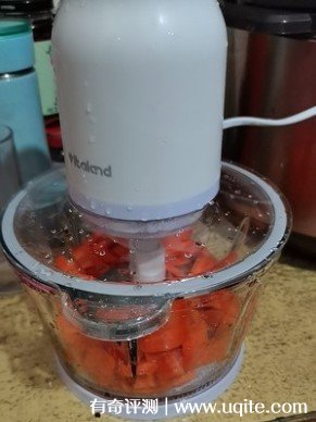 我還用它絞過辣椒醬、蒜蓉和一些水果蔬菜,絞的非常的細(xì)碎,沒有出現(xiàn)大的殘?jiān)?。不過它用起來需要用手扶著,不然會(huì)被被震的到處跑,不過這一點(diǎn)影響也不大,扶著也不礙事。