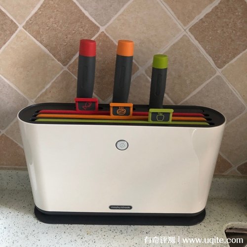 消毒機上自帶的道具還挺鋒利的,使用起來也很順手,而且顏色也是與砧板一一對應(yīng)的,一刀一砧板的使用形式,感覺就還挺適合有小寶寶的家庭的。紫外線的除菌方式,每次消毒運作的時間是5分鐘左右,五分鐘之后它會自行熄燈,完全不用再去管它,就還挺方便的。